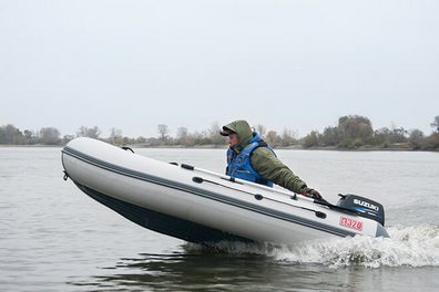Далее мы поговорим о том, чем же всё-таки отличается вывод в режим глиссирования лодок с жестким корпусом и надувных моторных лодок. В первую очередь, надо помнить, что для надувных лодок очень важно как вы распределяете вес груза и пассажиров. Кто-то говорит, что для ускорения перехода в режим глиссирования нужно как можно больше груза разместить на носу лодки. Некоторые переносят крепление бензобака в нос, а другие во время нахождения надувной лодки в переходном режиме стараются перенести свою массу тела с кормы на середину лодки. Таким образом они пытаются ещё сильнее придавить лодку к воде. Стоит отметить, что перенос массы тела для перехода в режим глиссирования есть смысл использовать при условии, что длина надувной лодки составляет не более четырёх метров. Помимо этого на лодке должен быть установлен подвесной лодочный мотор с ручным управлением и необходимой мощностью.