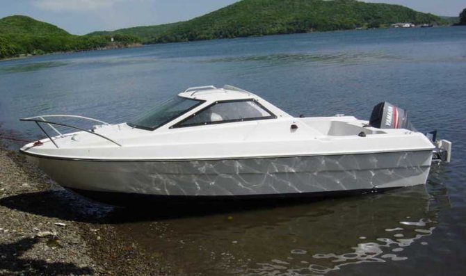 Первое, что бросается в глаза – стремительный силуэт этих лодок. Несмотря на своё изначально утилитарное предназначение и рубленые формы, благодаря судостроителям из Владивостока лодка приобрела определённый шарм. В результате этот корпус не смотрится бедным родственником среди других прогулочных катеров, имеющих более плавные очертания. Пластик бортов и палубы ровный, предметы отражаются в нём без искажений. Корпус производит впечатление основательности и качества. Всё на месте, ничего лишнего. Качественная функциональность без претензий на гламур.
