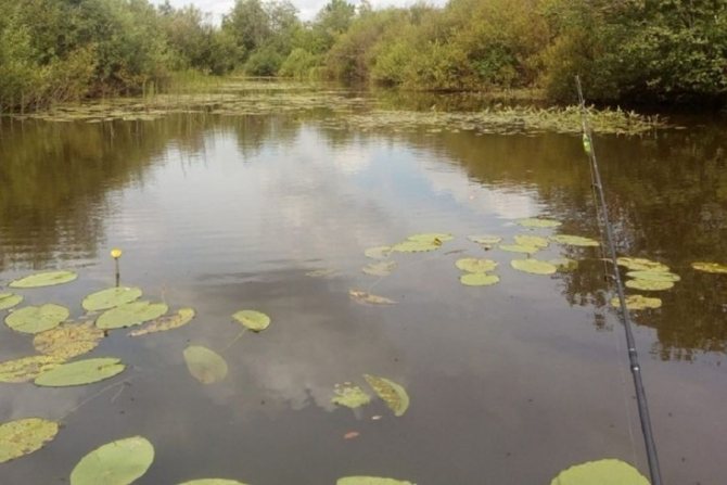 - Травность. Зарастающий пруд или иной водоем, с точки зрения рыбалки, играет двойную роль: в траве любит прятаться рыба, а вот поймать ее становится труднее.