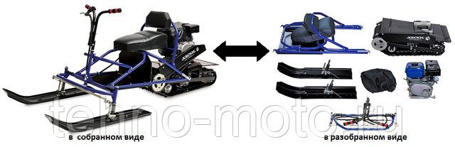 Всего за 5 минут снегоход может быть собран и подготовлен для передвижения.
