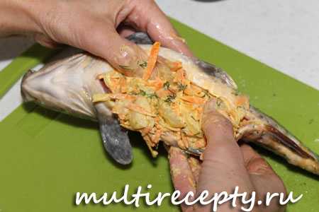 Накладываем внутрь рыбки начинку.