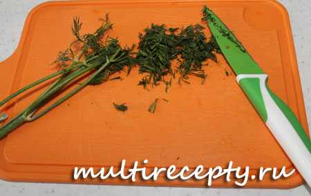 Тем временем мелко шинкуем немного укропа.