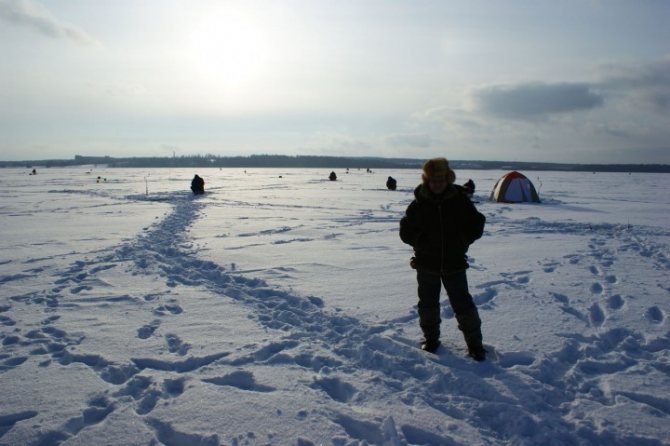 Зимой. Активность рыбы в данный период весьма неплохая, добычи хватает каждому приезжему рыбаку. Лучше всего ловится окунь, который клюет практически на любую приманку. Хорошее время для ловли — это первый месяц после начала сильных морозов. Во второй половине января размер добычи немного уменьшается, а хорошая поклевка переносится дальше от берега. Лучше всего окунь клюет в таких местах: