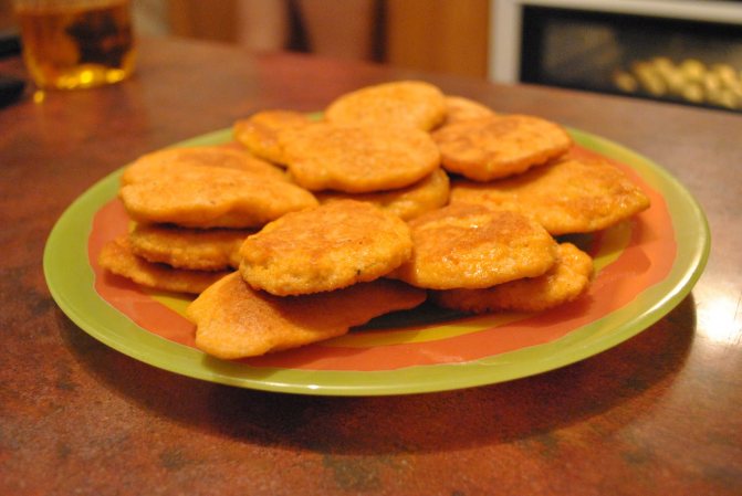 На разогретую сковороду выкладывайте массу ложкой, готовьте до румяного оттенка с обеих сторон на небольшом огне.