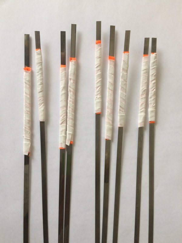Я рекомендую делать флажок двух разных цветов (красный — черный, красный — оранжевый, черный — оранжевый, оранжевый — лимонный). Это позволит заметить поклевку в любых условиях. Кроме того, на своих ставках к флажку я наклеил полоски из светоотражающего материала(пришлось порезать несколько фликеров). Эта полоска выполняет несколько разных функций. Во-первых, при ловле в темноте сработавшая ставка отлично видна в свете фонарика. Во-вторых, при дневном свете эта полоска перестает отражать свет и становится обычной полоской ткани серого цвета, превращая наш флажок в двухцветный, одинаково хорошо заметный в разных условиях.