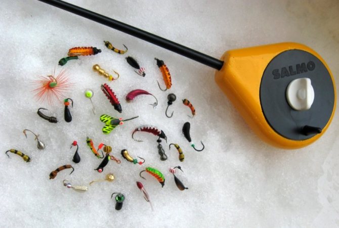 Основными приманки при ловле со льда отвесным блеснением являются балансиры и вертикальные зимние блесны. Оснастить можно и мелкие ВИБы, некоторые рыболовы ловят, иногда успешно. Крайне редко используются силиконовые приманки.